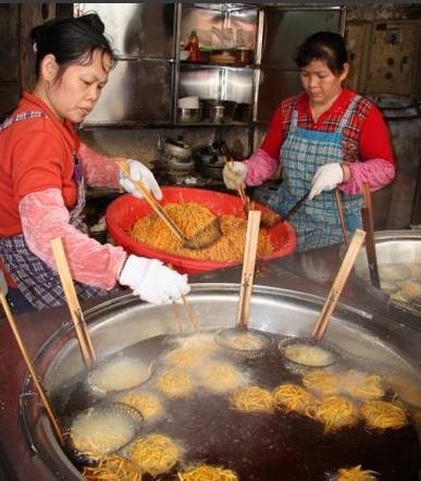 接着一连几天,家家户户忙着灼酒、做年糕(甜粄)、煎油果(油挤子)、炸酥烧、炸肉丸、熏鱼、卤鸡鸭等。