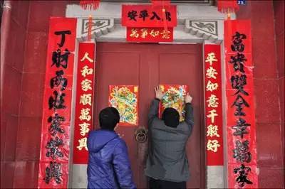 到年二十八、二十九,家家贴春联,贴门神。从这天到年初三或年初五晚上各家点灯照明到天亮,俗称“点年光”。