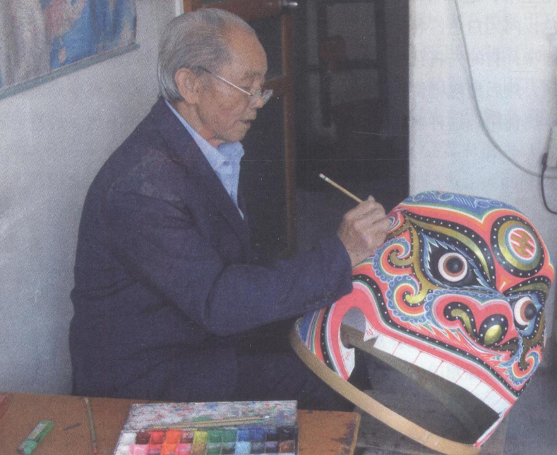 舞狮是客家人逢年过节世代相传的喜庆活动节目。要舞狮,就离不开狮头道具的制作。龙川县黎咀镇虎口村丘氏制作的金狮狮头名扬全国、畅销国内外。据传,虎口村制作狮头的传统工艺始于1876年,创始人是丘福光、丘新发两家。而且丘新发还一-生钻研文学、诗赋,曾受皇恩钦赐乙已科进士。起初,他们是依据《西游记》唐僧到西天取经的故事来创制狮头,再配以唐僧、孙悟空、沙僧等角色形象的面具,形成一整套的舞狮角色道具。其后,二代传人丘荣记继承祖艺,并对祖传工艺不断改进,制作工艺得到了不断进步。目前丘俊老人是狮头的第三代传入,他自15岁开始便把祖传的民间工艺不断发扬光大,并在当地的虎口村成立了“艺光美术部”,继续加工、创作有着一百多年历史的虎口客家瑞狮,传承其祖传工艺。如今他制作的狮头栩栩如生,不褪色,不会脱漆,可用多年不变形。丘俊老人亲手制作的客家瑞狮不仅销售到台湾、香港、澳门等地,而且还有一些海外华侨慕名而来下单订购。
