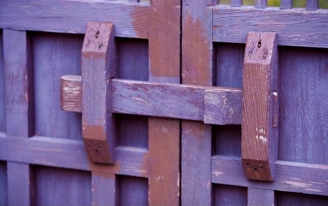 客家围屋主要出入口就是这扇大门,因此此门的门闩也要特别牢固,着重防御。走进我市的各个古村落,可发现,在古村落的这些建筑中,几乎所有成规模的大围屋都有一个十分坚固的木门。大门是用实心木板拼接而成,木板一般很厚,大多厚度在4寸左右。在木门的中央,则是坚固的门闩。一般情况下,一座围屋只有一个大门,它的门券、门框、门槛,大都是以坚硬厚实的花岗岩石板镶砌而成,两片厚厚的木板便成了大门的门面。门斗深深矗立入地下或墙体;门闩是双向大方形的硬木。有的门闩长度至少比大门宽度长二分之一以上。这种长度的门闩也要求,在夯土墙的时候,两边的墙壁上必须预先留两个长长的门洞,修建好了房屋门闩往两边一扣。开门时,只需把两根门闩往两边墙洞中推开。这样设计的门闩,十分牢固,围屋的安全系数顿时提升——只要将大门紧闭,在板门后加横闩杆插入石门框中,就不怕外人撞门攻击。特别值得一提的是,如果有人要从门外的缝隙里伸进锯子,欲把门闩锯断该如何是好呢?其实,也不用担心,锯断了的门闩,它仍然会卡死大门。这是因为,门闩的两端都紧紧插在两边的墙壁上,中间断裂了并不能影响门闩的作用。