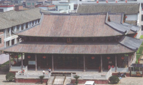 龙川学宫是具有明清建筑风格和岭南特色的建筑,斗拱缩小、稳重严谨、形体简练、细节讲究。龙川学宫现存有三座建筑,首先映入眼帘的是大成殿,殿中设有孔子像,像前有“大成至圣先师孔子”牌位,左右是四配、十二哲。古时生员入学,先进大成殿拜谒孔子牌