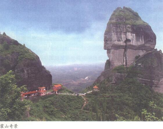 的丹霞地貌增添不少人文气息。相传,远古时代,这儿没有大山,是一位仙人施展法术, 将别处的石头变成乌猪,星夜兼程赶到这儿的,到了之后见皓月当空,天尚未亮,其又吹口仙气,巧摆石头,从而使霍山奇峰林立,异石尊尊,挺拔秀丽,巧夺天工。又有传说,霍山为何会在:上山顶上长石峰,是因当年的女娲补天时将剩下的一点砂浆随手一甩,刚好落在此地,故呈现出土山顶上长石峰的天下奇观。美好的景致总与仙人有关,大抵“山不在高,有仙则灵”就是如此了。